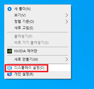 ▶ 바탕화면에서 마우스 오른쪽 클릭을 하신 후 "디스플레이 설정(D)" 을 클릭합니다.