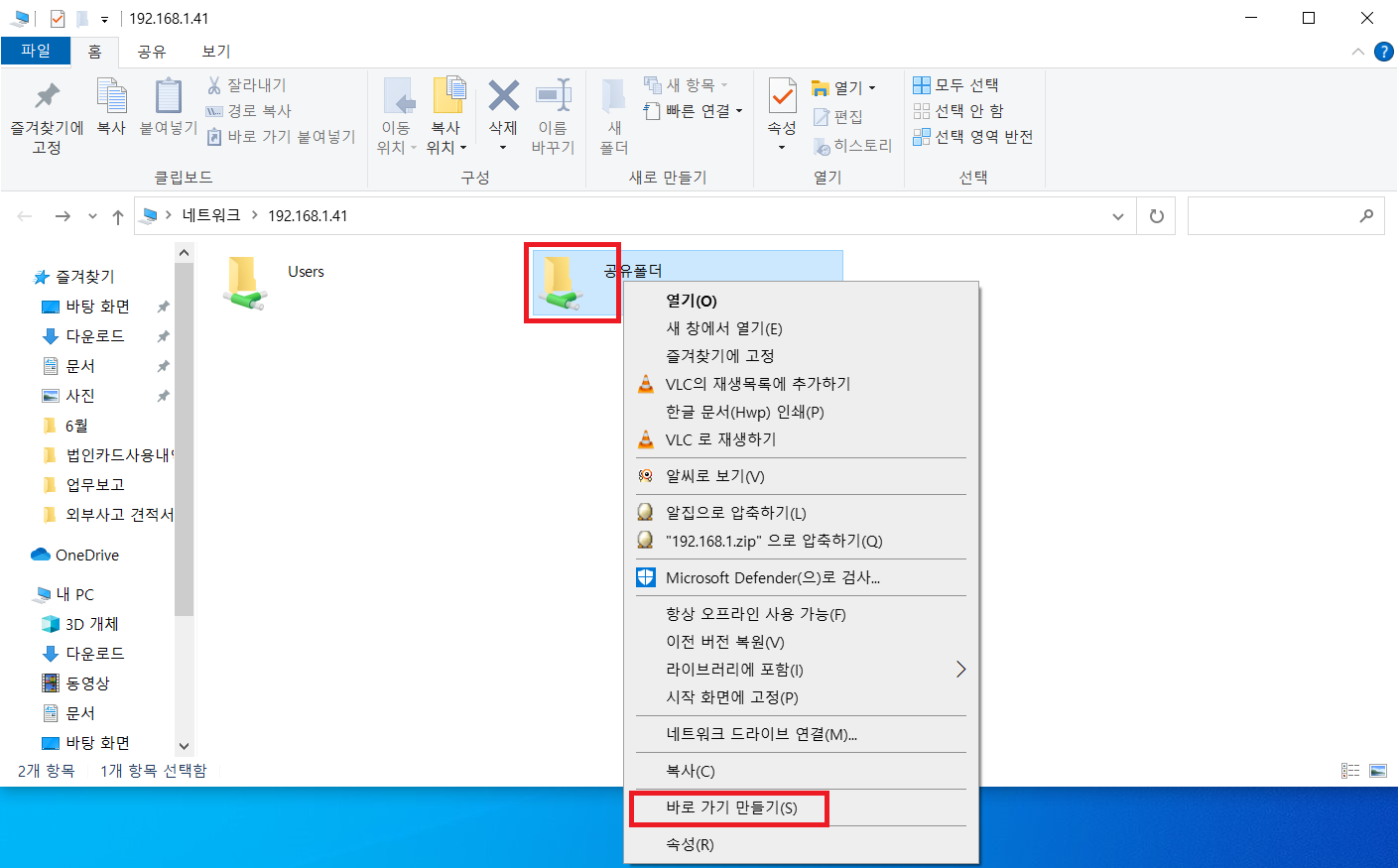 A. 공유폴더 바로가기 만들기