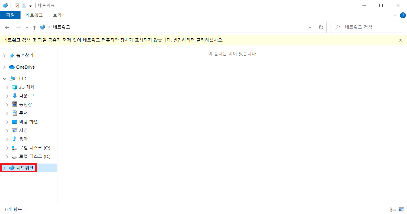 공유폴더를 사용하기 앞서 네트워크 옵션을 설정해야 합니다.