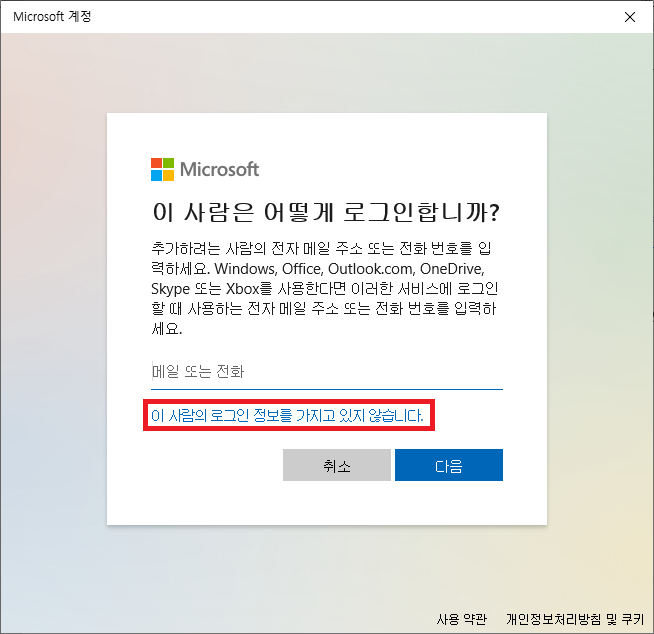 "이 사람의 로그인 정보를 가지고 있지 않습니다."를 선택합니다.