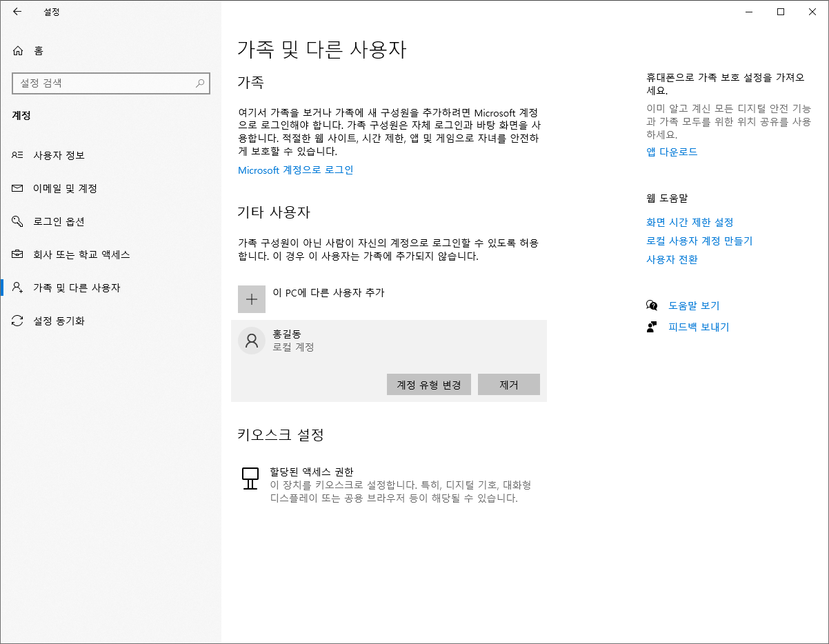 사용자 계정 유형(권한) 변경하는 방법 - Windows 10