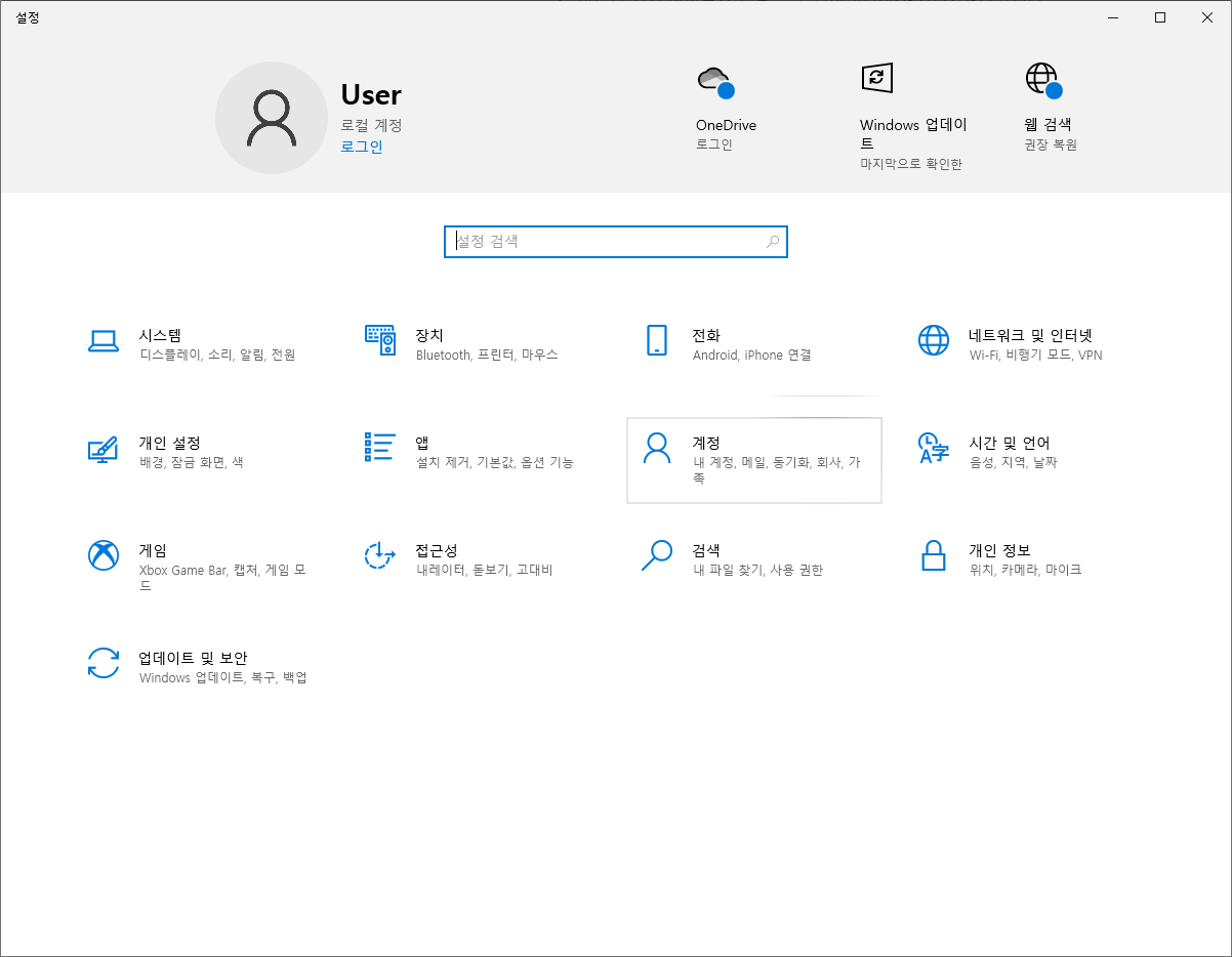 ▶ 설정 창이 나타나면 여러 아이콘들 중에서 "계정"을 선택합니다.