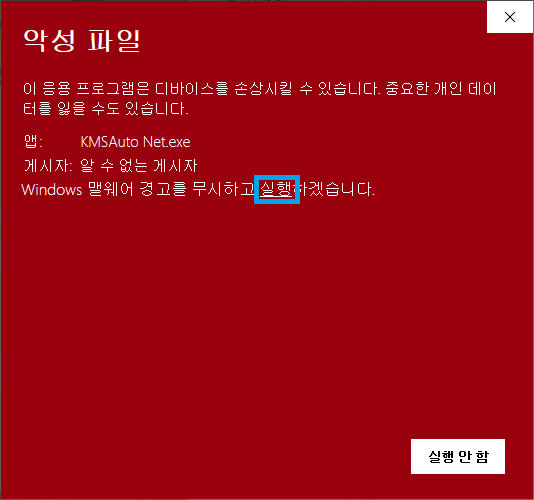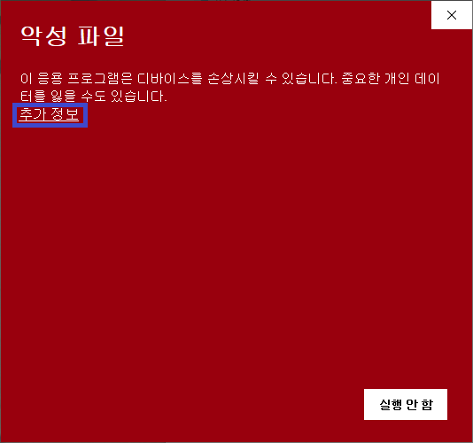 ▶ 추가 정보를 클릭 후 실행 버튼을 클릭해 줍니다.