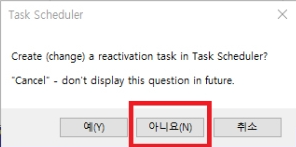 ▶ 그 후 아래와 같은 문구가 나오게 되면 아니요를 클릭해주시면 됩니다.