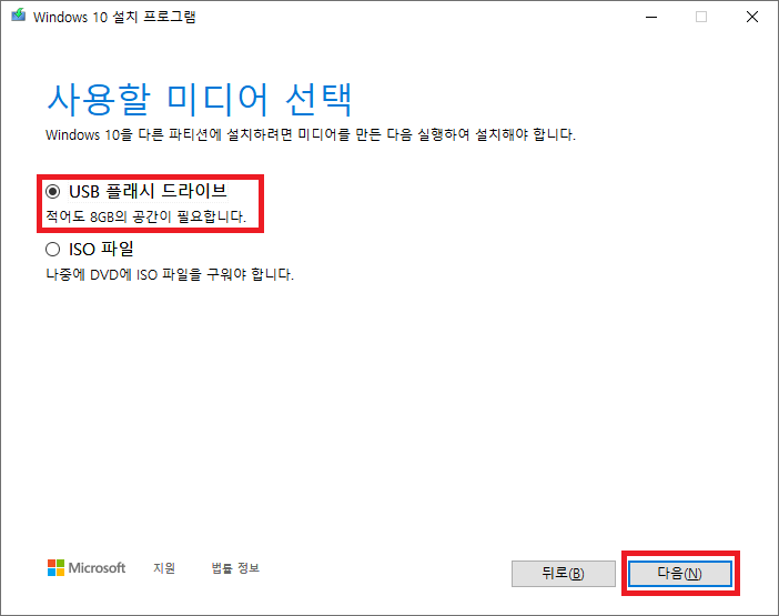 윈도우10 설치 USB 만들기