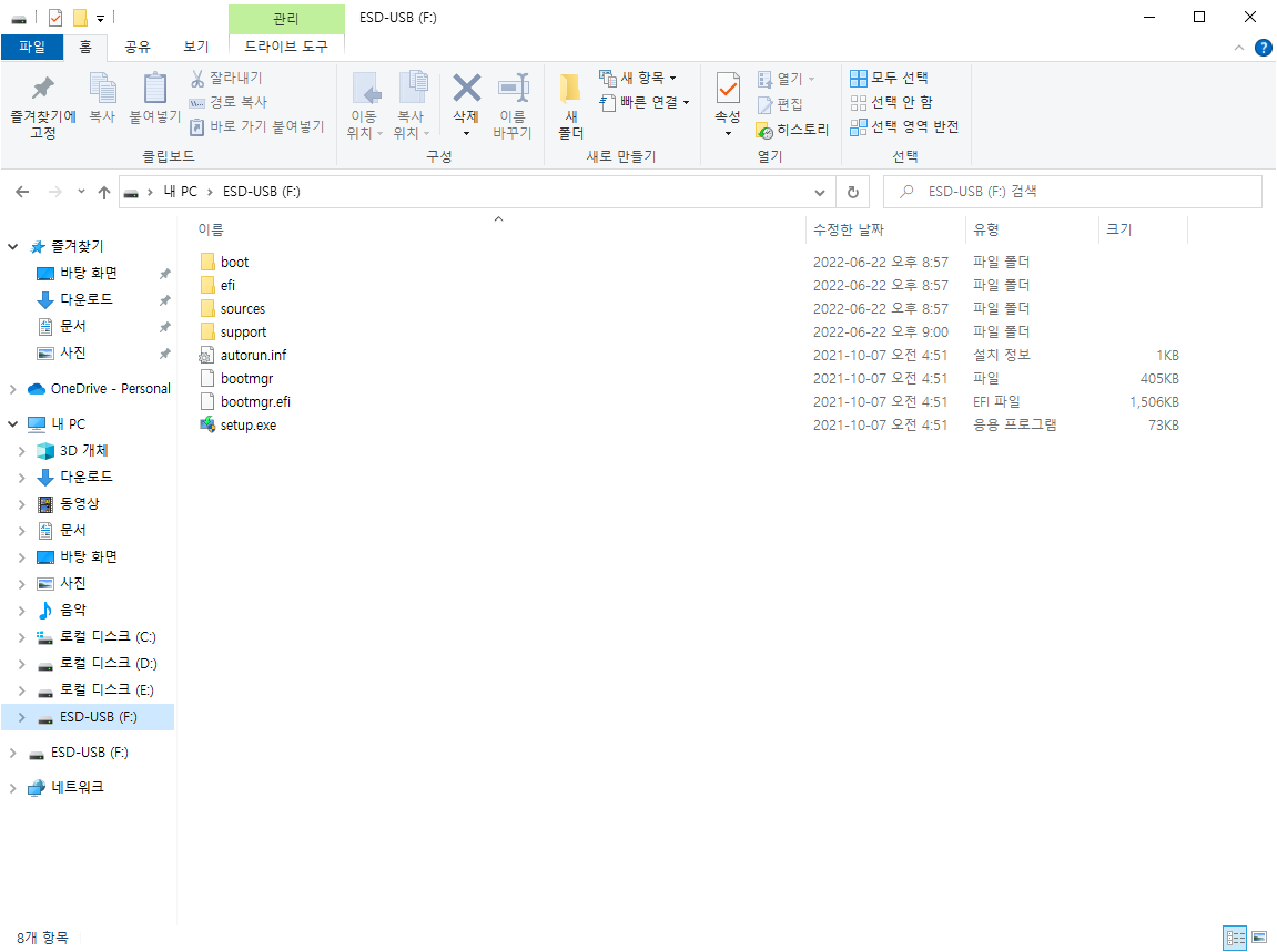 11. 짜잔~!!! Windows 10 설치 USB가 완성되었습니다!