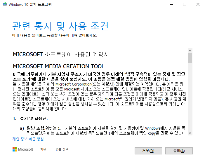 B. 윈도우10 설치 프로그램 다운로드