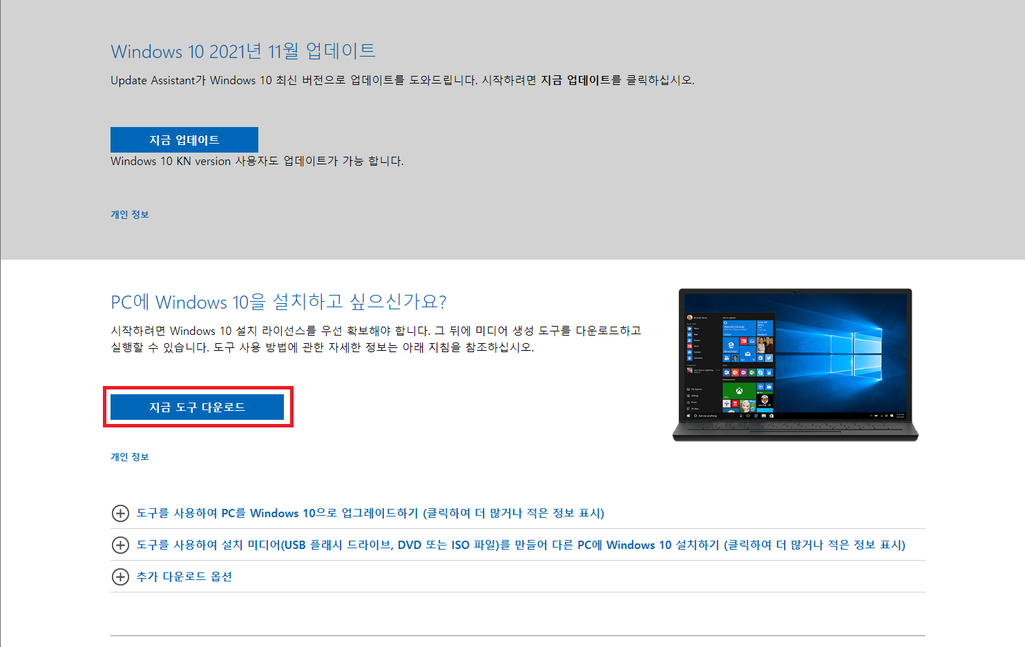 아래 링크로 접속하여 "지금 도구 다운로드" 버튼을 눌러 파일을 다운로드합니다.