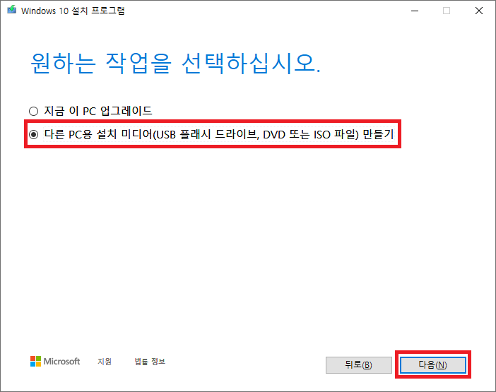 4. "다른 PC용 설치 미디어"를 선택하신 후 "다음(N)" 버튼을 클릭합니다.