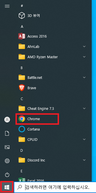 크롬을 작업표시줄에 고정하려면 윈도우 메뉴에서 어디에 있는지 알아야 합니다.