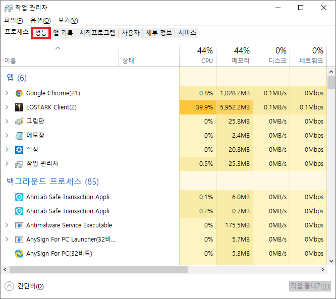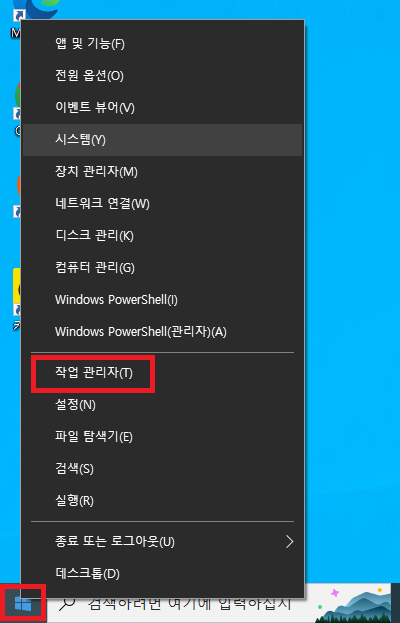 ▶ "작업 관리자(T)" 버튼을 클릭 합니다.
