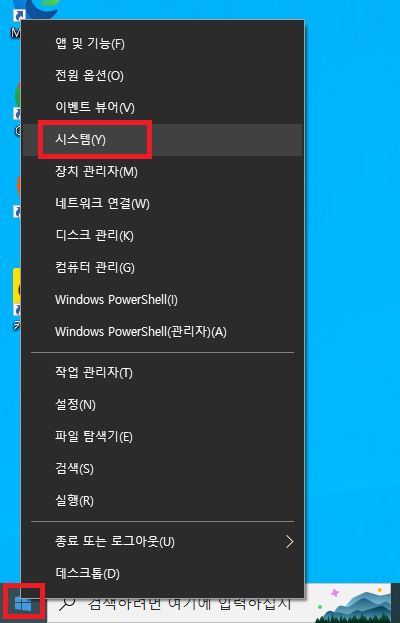 ▶ 왼쪽 하단의 "윈도우 버튼"을 "마우스 오른쪽"으로 클릭합니다.