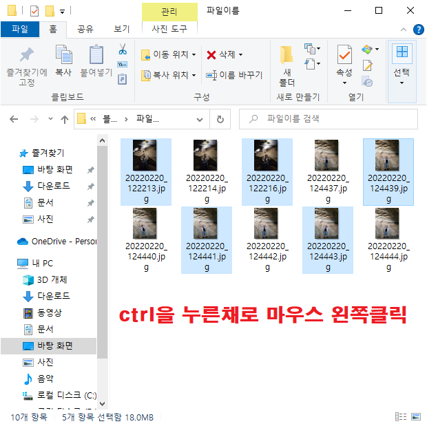 이대로 보관해도 무방 하지만 누구랑 찍은 사진인지 어디서 찍은 사진인지 구별하기 위해서 파일 이름을 바꾸게 됩니다. 이때 수많은 사진의 제목을 하나씩 변경하기에는 시간이 너무 오래 걸립니다.