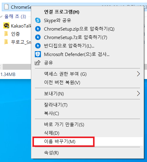 1. 파일을 마우스 오른쪽 클릭 후 [이름 바꾸기] 를 선택합니다.