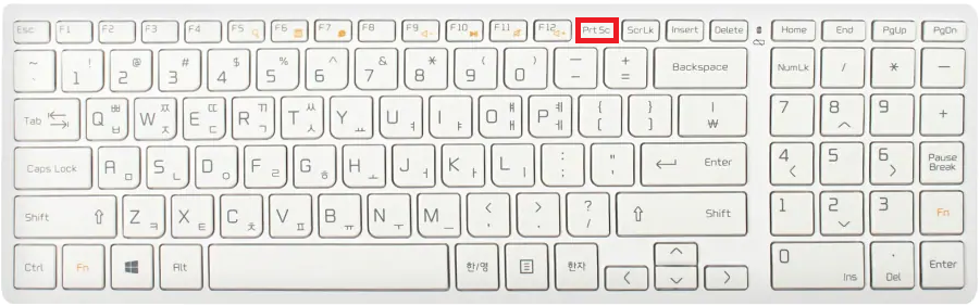 대부분의 사람들이 알고 있는 가장 노멀한 방법인 "Prtscn(프린터스크린)"키를 이용해서 전체화면을 캡쳐하는 방법입니다.