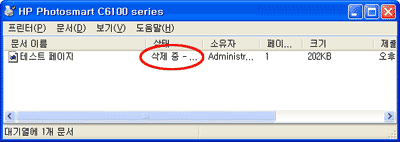 아래 그림과 같이 대기 문서가 삭제가 되지 않고 '삭제 중' 또는 '오류' 상태로 지속되는 경우입니다.