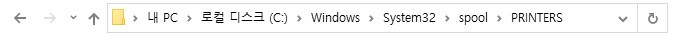 6. 창을 닫지 마시고 탐색기를 열어 [ C:\windows\system32\spool\PRINTERS ] 경로로 이동합니다.