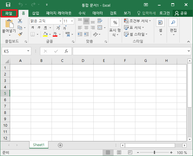 1. 왼쪽 상단 [파일] 버튼을 클릭합니다.