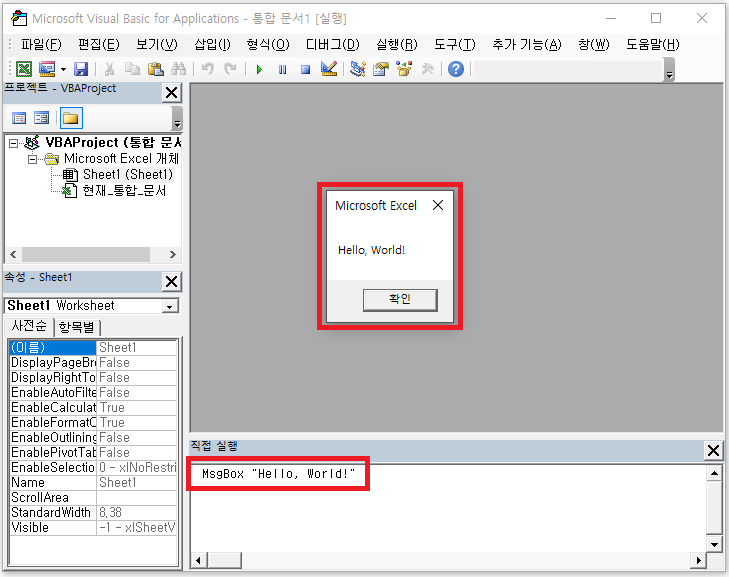 간단한 예제들을 통해 VBA가 이런 거구나 라는 느낌으로 무작정 따라 해 봅시다.